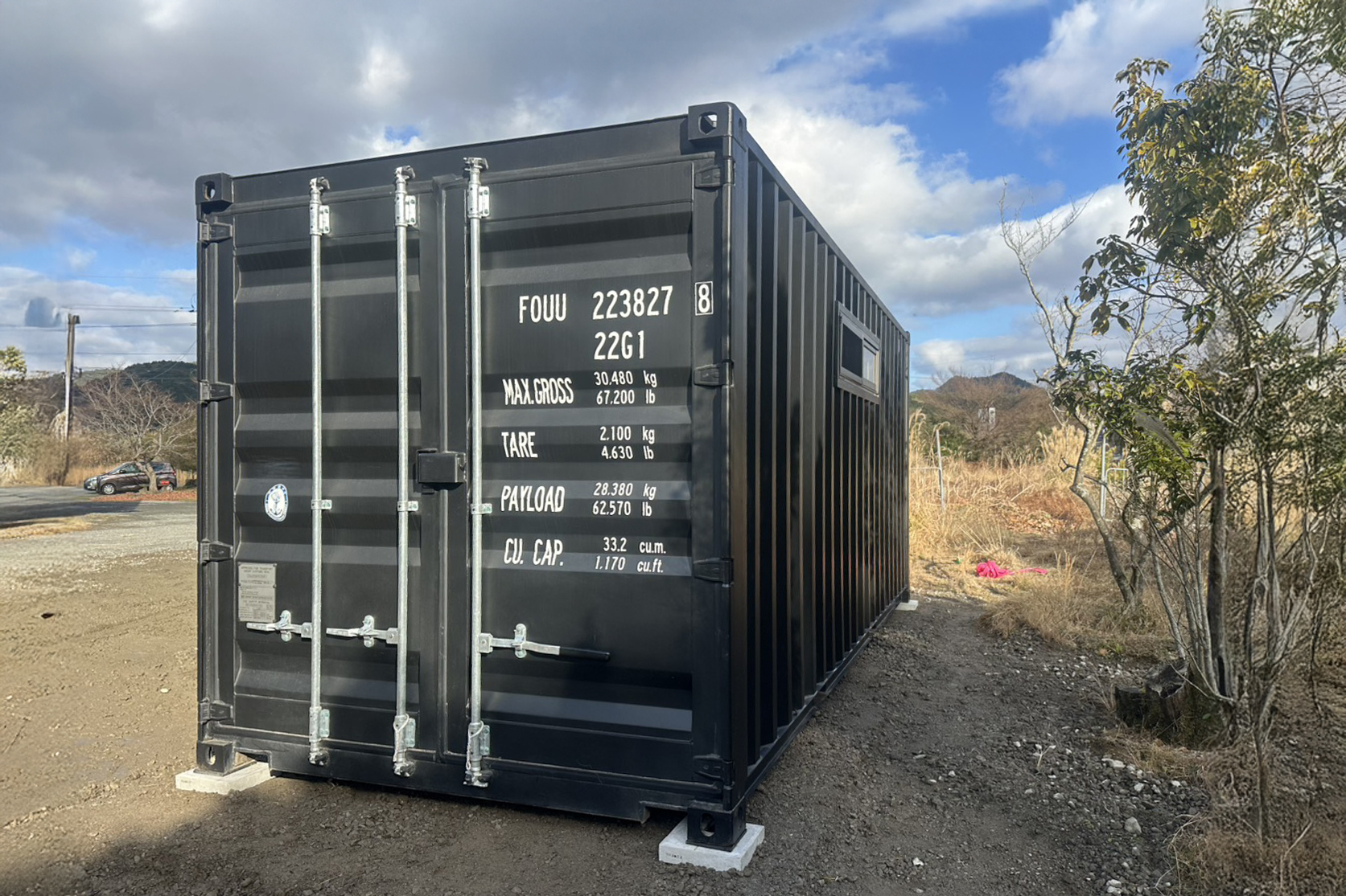事例紹介:20フィート新品(ワンウェイ)コンテナにドア1カ所、窓1カ所を取り付けました。